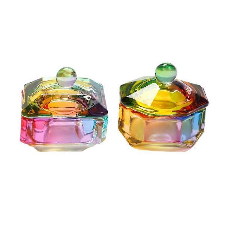 2 Pcs Colorful Crystal Nail Powder Cup with Lid Glass Dappen Dish for Manicure Octagon and Quadrilateral