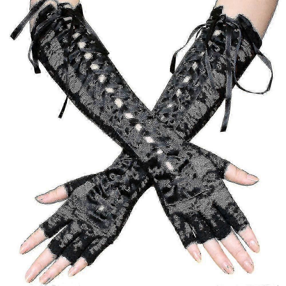 Lace Winter Elbow Fingerless Gloves Ribbon Fishnet Party Gloves