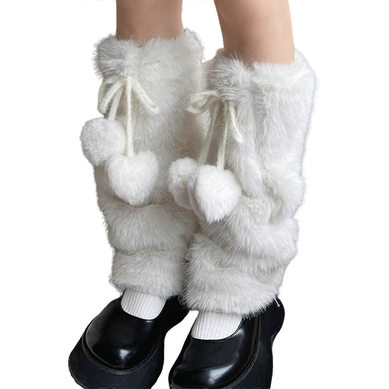Women's Plush Knee-Length Leg Warmers with Heart Balls & Bow