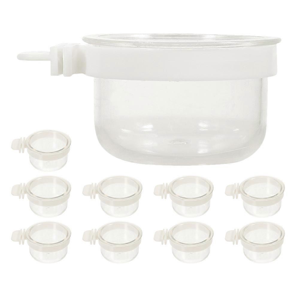 These bird bowls with clamps are a durable and option for feeding your birds. Suitable for a variety of birds including cockatiels and , the bowls can be securely attached to the cage. Features -Color:Transparent -Material:Acrylic -Size:7.00X5.50X3.50cm/2.75X2.16X1.38in -Robust and safe: made from durable materials, this parrot feeding box ensures the safety and wellbeing of your birds -Effortless maintenance: the detachable components make cleaning and refilling a breeze, ensuring your birds always have access to fresh food and water -Multispecies compatibility: for a wide range of bird species, including parrots, canaries, and quails, making it a versatile choice for bird owners -Firm attachment: features a secure attachment system that keeps the feeding box stable and prevents accidental spills and messes -Bird food cups are an essential accessory for bird lovers and bird watchers who want to provide and reliable source of food for their Package list: 10 food cup