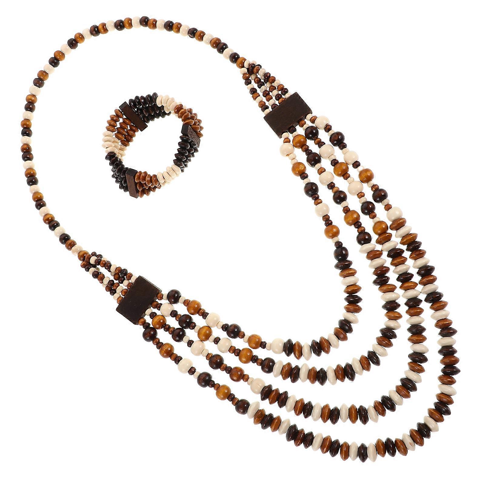 Vintage Bohemian Jewelry with Beaded Necklace Earrings and Bracelet 1Set