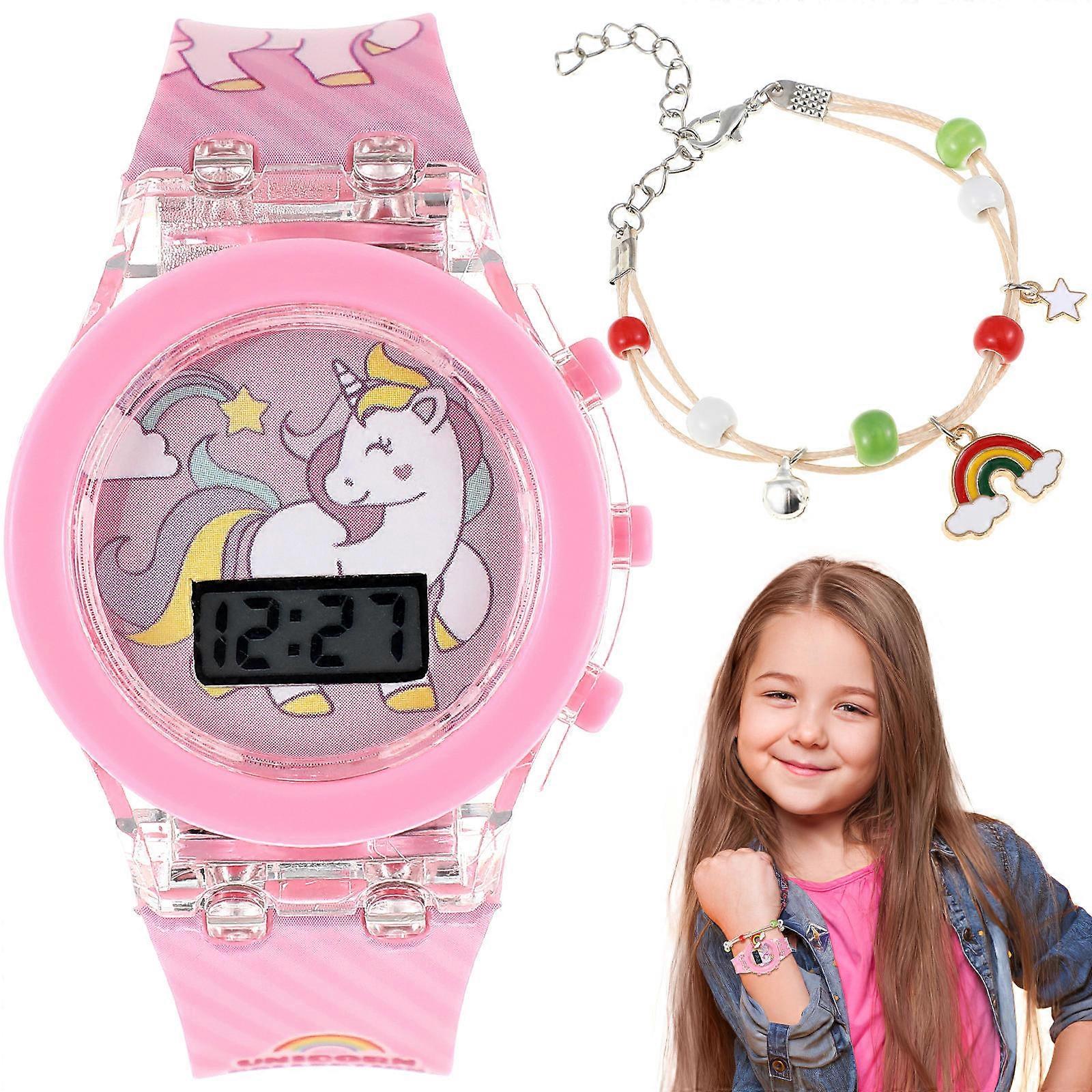 Unicorn Watch Kids Cartoon Luminous Watch with 1Set for Time Display