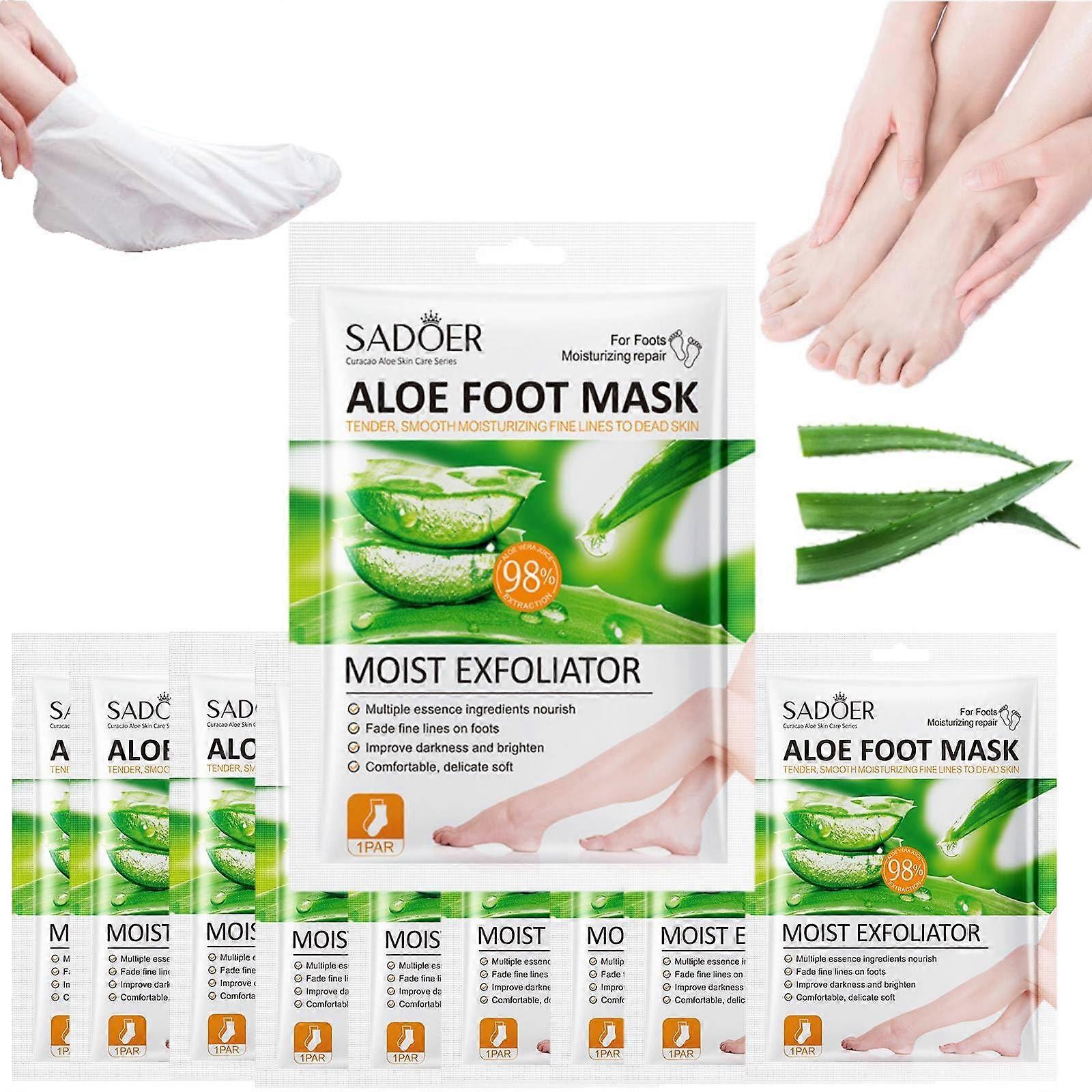Foot Peel Mask with Aloe Vera for Cracked Heels, Deep Hydration Moisturizing Socks, 10 Pairs