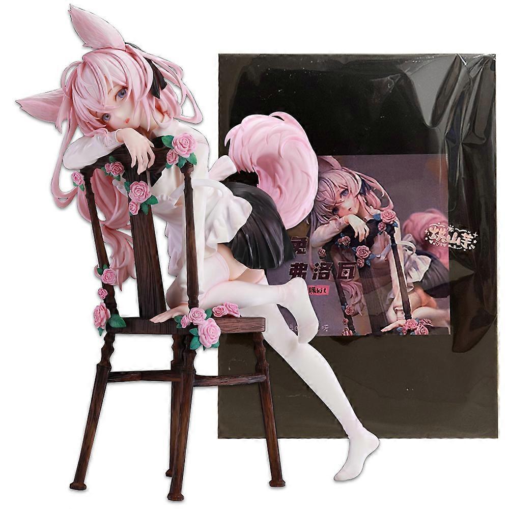 22CM Anime Rabbit Flova Figure 1/7 Stool Kneeling Scene Matching Model Toy Gift Collection Aciton Figure Rabbit Ears Ver PVC