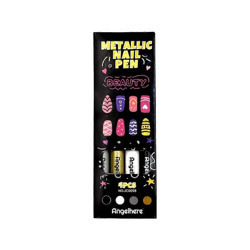 4 Metallic Color Acrylic paint pen Set, Nail Polish Pens Nail Point Graffiti Dotting Pen Drawing Liner Brush for DIY Nail Art