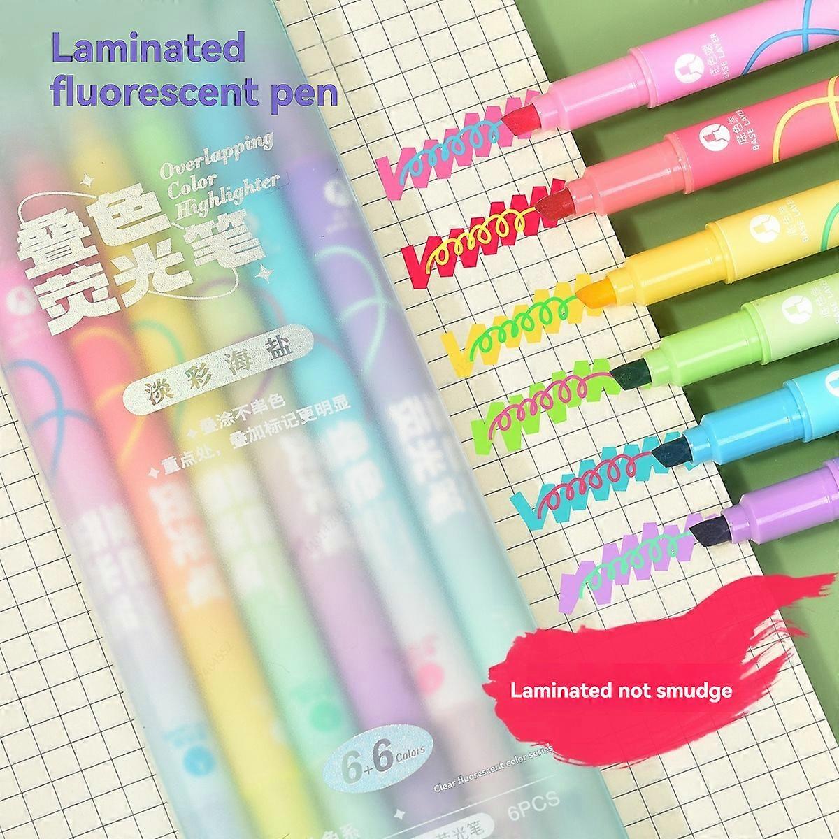 6Pcs Overlapping-Color Highlighter Double-ended Magic Color Changing Highlighter Pen Set, Student Diary Scrapbook Painting