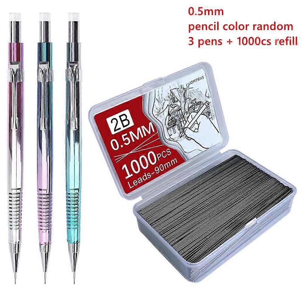3+1000Pcs Mechanical Pencil Set 0.5/0.7/0.9 mm with Lead Refill for Writing Sketching Drawing Painting School Automatic Pencils