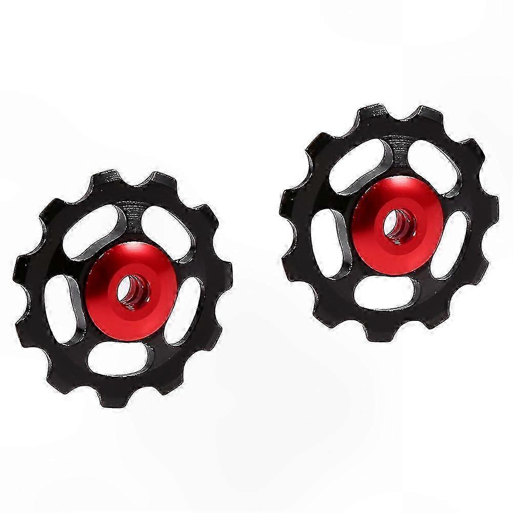Black Red 11T CNC Aluminum Alloy Bicycle Rear Derailleur Jockey Wheel Pulley (2pcs)