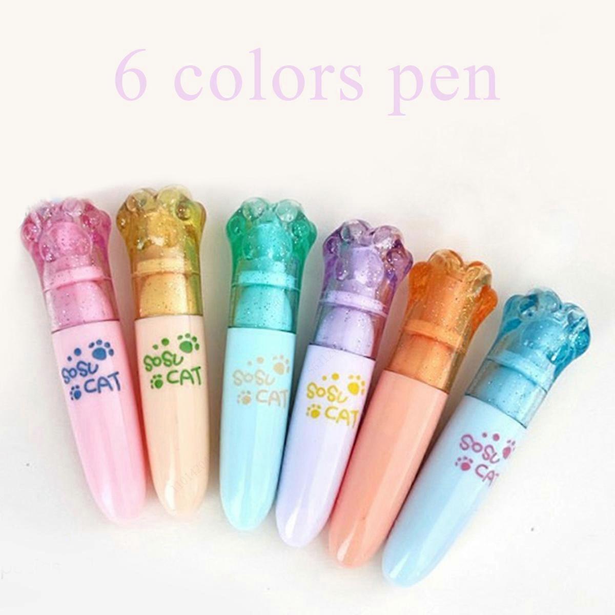 6 Pcs Kawaii Mini Highlighter Pen,Chisel Tip, Assorted Colors, Water Based, Quick Dry, For Coloring School Supplies