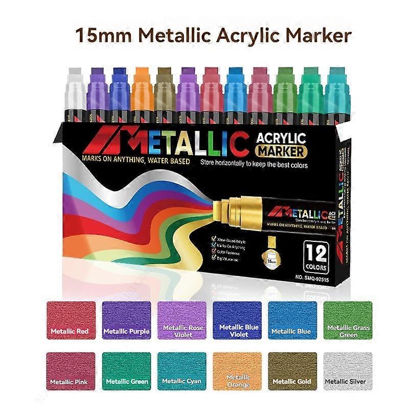 Jumbo Poster Markers Set 12 Colors Large 15mm Wide Tip Permanent Metallic Ink Thick Acrylic Paint Pens for Stone, Glass, Wood,