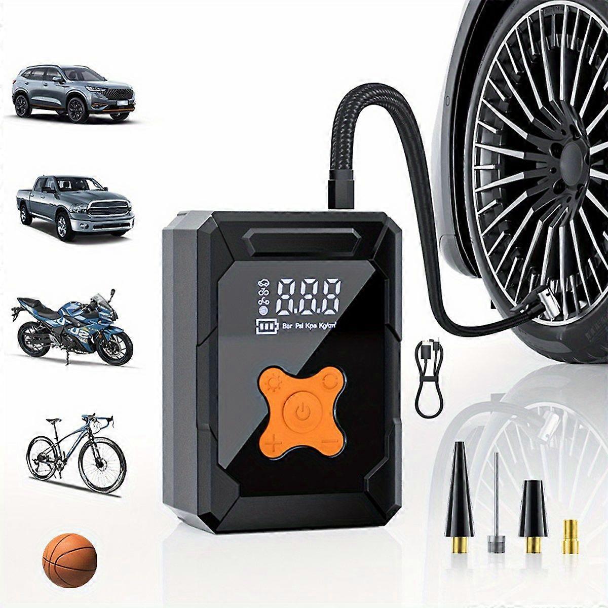 USB Rechargeable Portable Cordless Tire Inflator with Digital Display & LED Light for Car Bike Motor