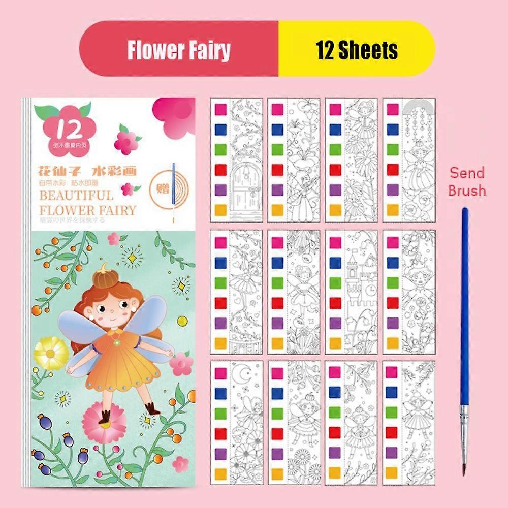 12 Pages Watercolor Coloring Book DIY With Painting Brush Graffiti Doodle Book Handcrafted Portable Coloring Painting Book