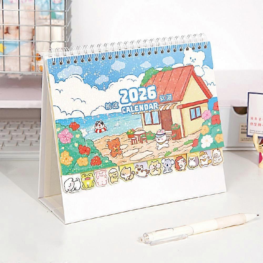Memo Notes 2026 Desk Calendar Coil Binding Cartoon Tabletop Schedule One Month to View Learning Plan Calendar Office