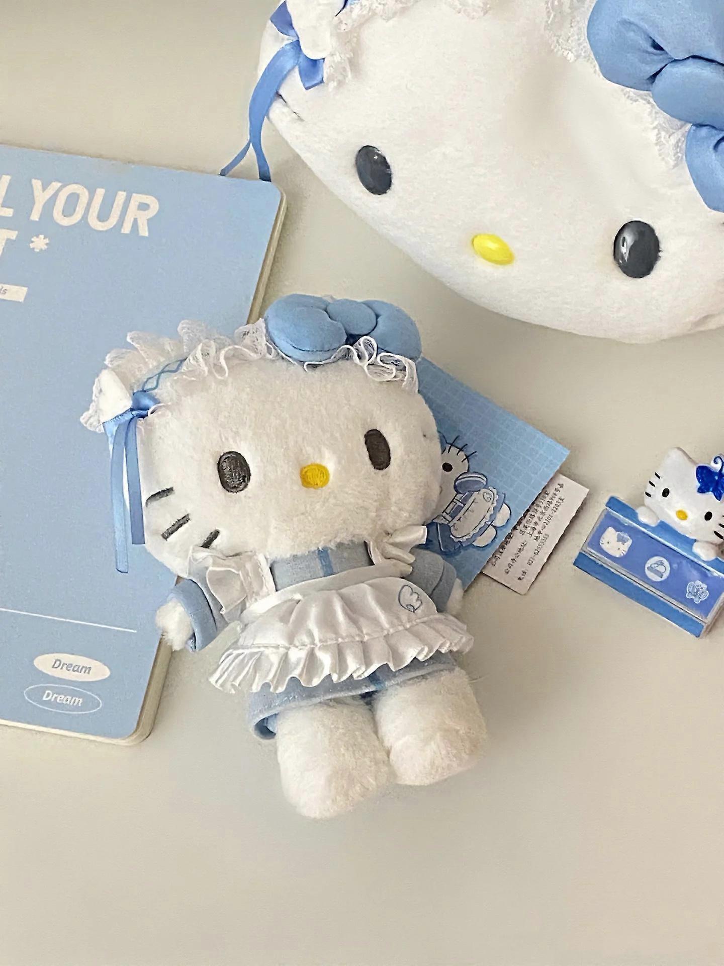 Sanrio Hello Kitty Keychain Plush Doll Anime Kawaii Maid Kt Girl Blue Maid Outfit Decorate School Bag Pendant Pp Cotton Toy Gift