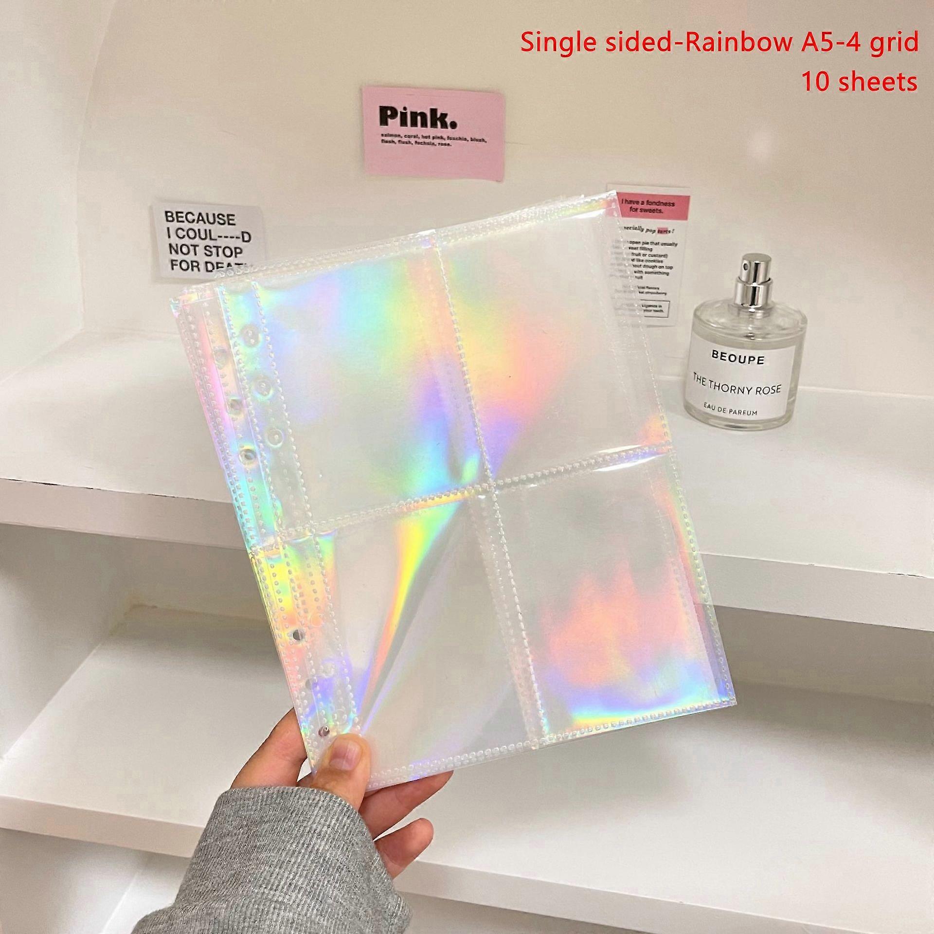 10PCS A5 Laser Rainbow Star Binder Sleeves 1/2/4Pockets Transparent Inside Page of Album 6 Ring Refill Inner Page Photocard Kpop