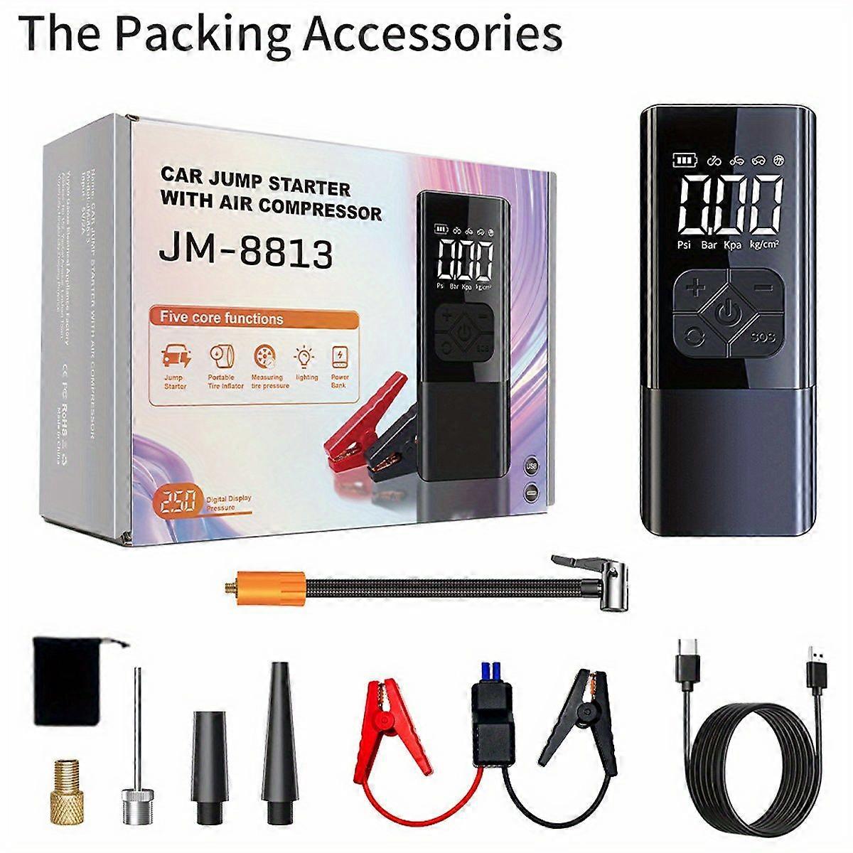 Portable Car Jump Starter with 150PSI Tire Inflator, Digital Air Pump and Battery Charger
