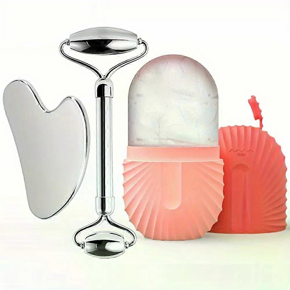 3in1 Stainless Steel Ice Face Roller & Gua Sha Facial Skincare Tool Kit Face Lifting Facial Treatment Reduce Acne Skin Care Tool