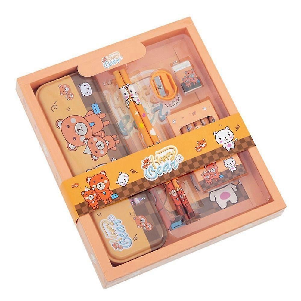 Pencil Case Sharpener Study Stationery Set Colored Crayons Rulers Pencil Eraser Set Cartoon Stationery Gift Box School Supplies