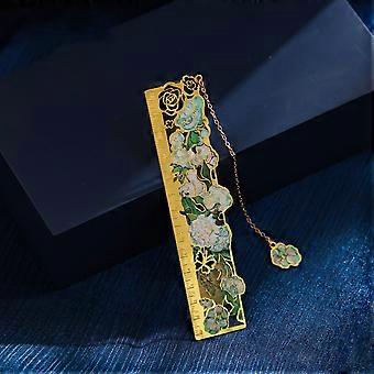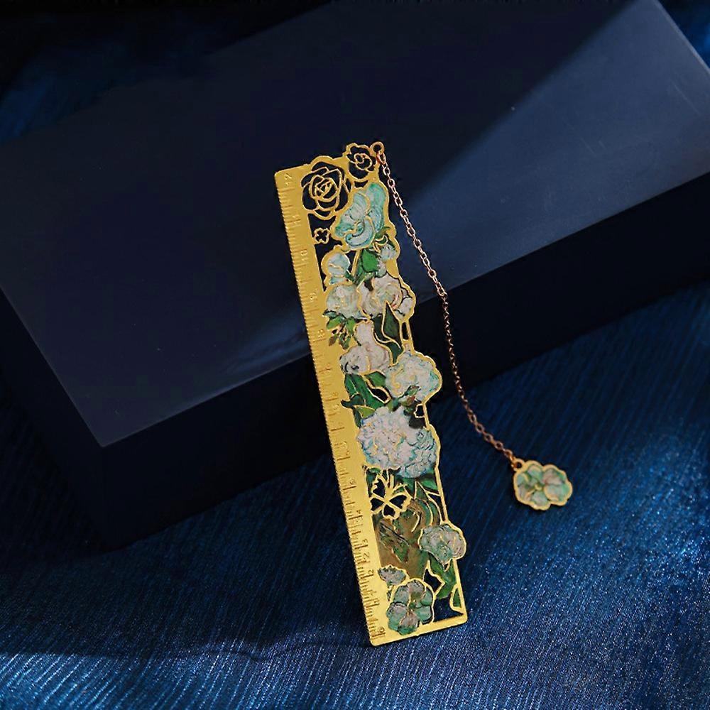 Retro Alloy Floral Painting Ruler Oil Painting Style Tassels Metal Bookmark Stationery Famous Painting Hollow Bookmark Student