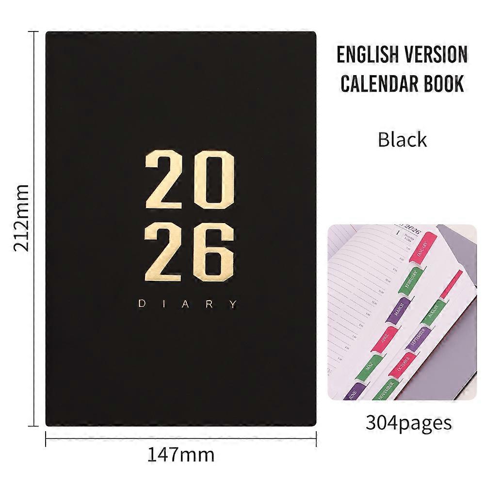 Portable A5 2026 Schedule Book 304 Pages Self-discipline Calendar Planner Efficiency English Daily Notepad Task