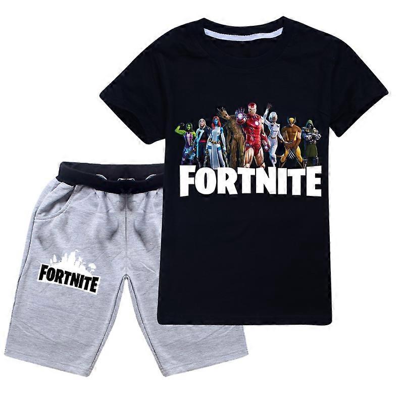 Fortnite Tshirt Pants Suit Children Cartoon Anime Clothes Set Summer Short Sleeve Tee Shorts Kids Sportswear Outdoor Clothing