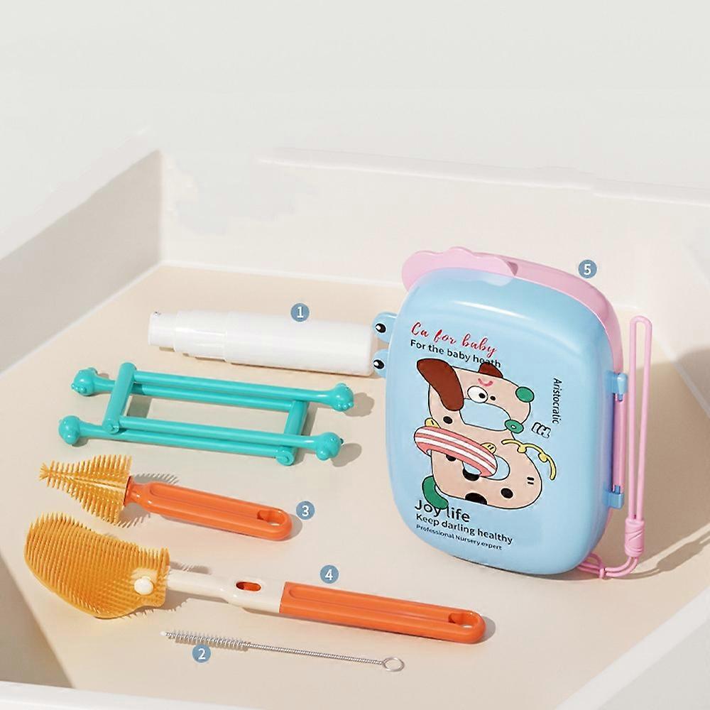5-in-1 Baby Bottle Brush Set Built-in Drain Rack Drying Rack Nipple Straw Cleaning Brush Space Saving Portable Cup Brush