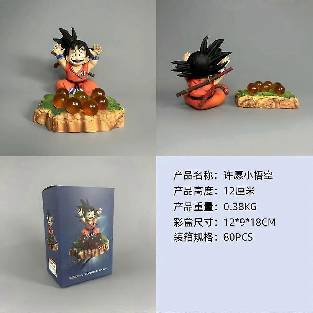 12CM Anime Son Goku Figure Dragon Ball Sitting Model Toy Doll Action Figure Wishing Dragon Ball Scene Desktop Ornament Gift