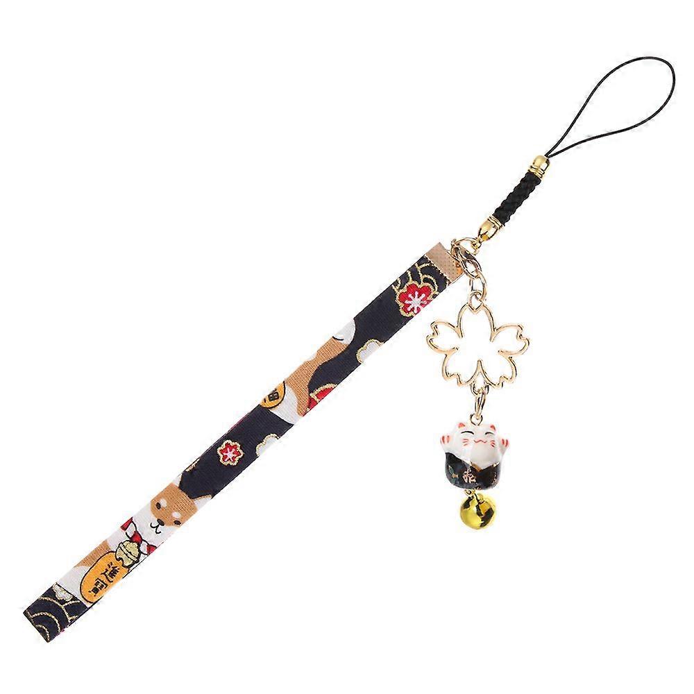 Pendant Phone Strap Lanyard Bells Lucky Cat Bell Sakura Phone Lanyard Keychain Wrist Rope Anti-lost Lanyard Phone Strap Lanyard