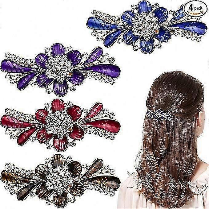 KINZON French Retro Hair Clips Set with Flowers, Rhinestones, Crystals, and Metal