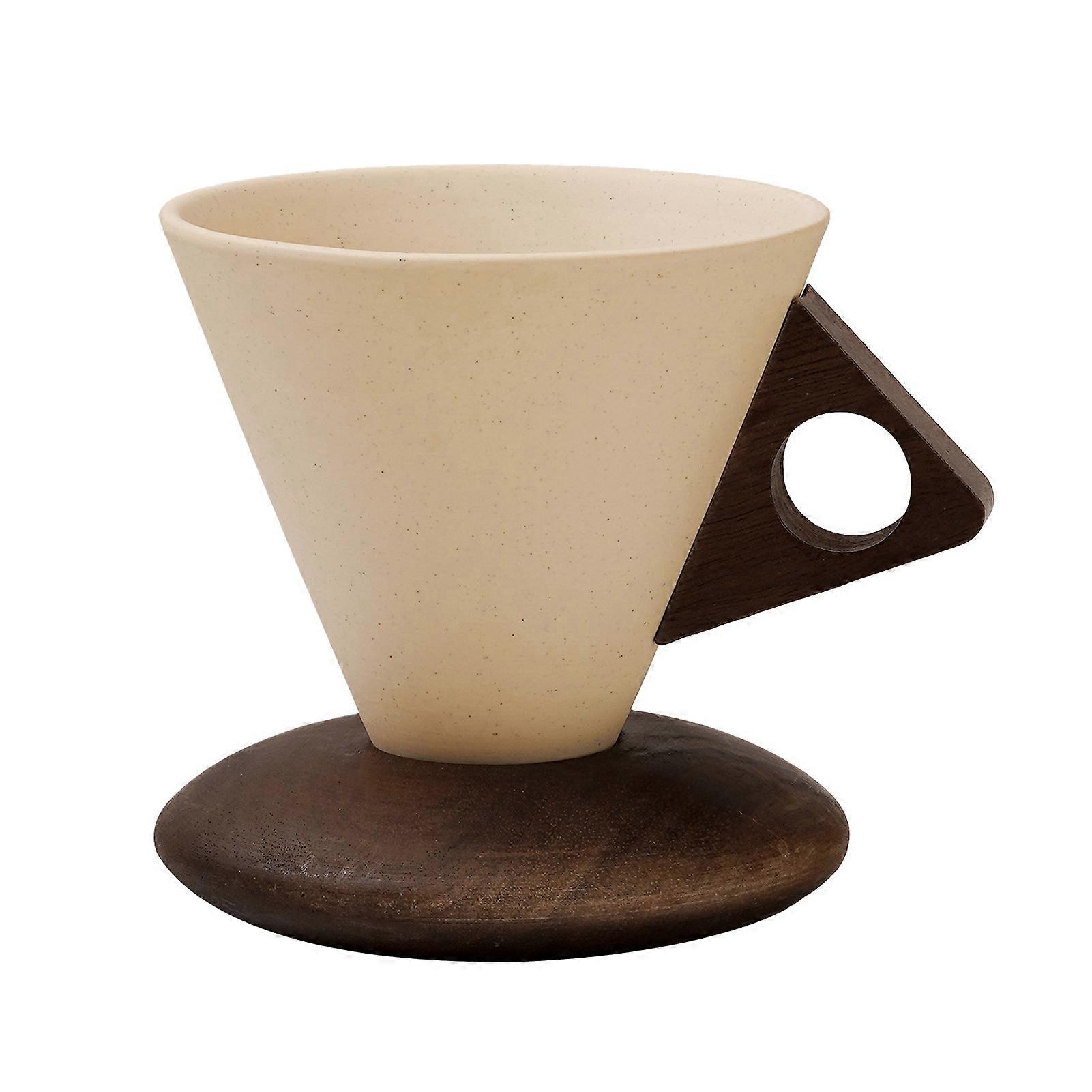 Mid-Century Modern Cone Coffee Cup & Saucer Set with Wooden Handle – Handcrafted Ceramic Latte Mug