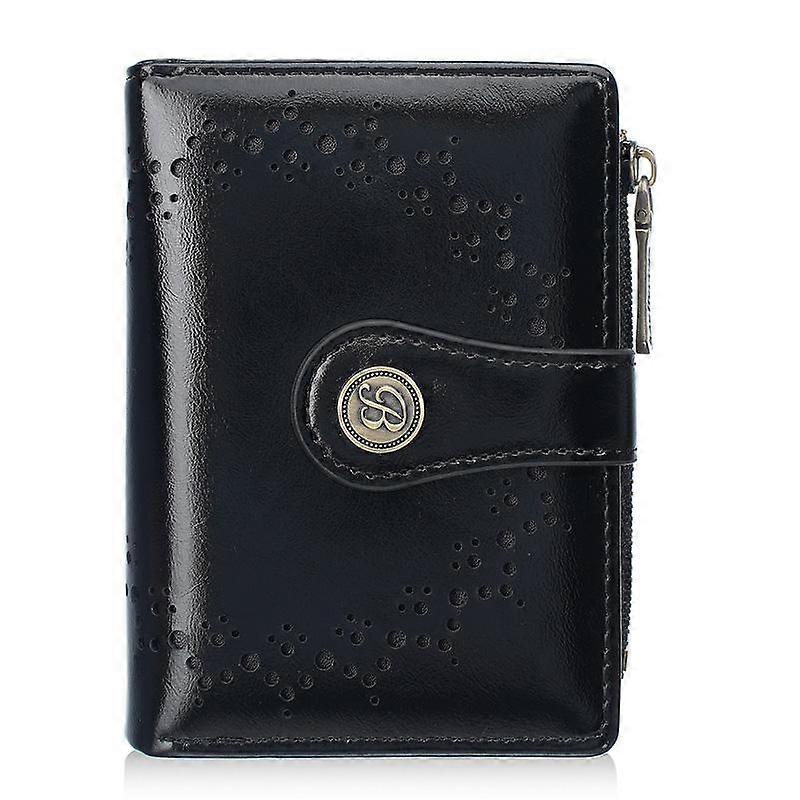 Baellerry N8358 Women Short Wallet Oil-Waxed Leather Hollow Pattern Multi-Card Holder Zippered Coin Pocket