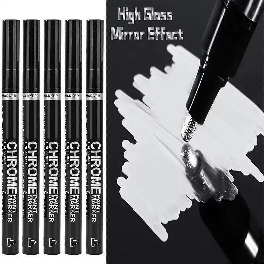 5/1pcs Chrome Pen Marker Mirror Waterproof Paint Repair For Rock Ceramic Glass Metallic Gold/Silver 2mm Nib