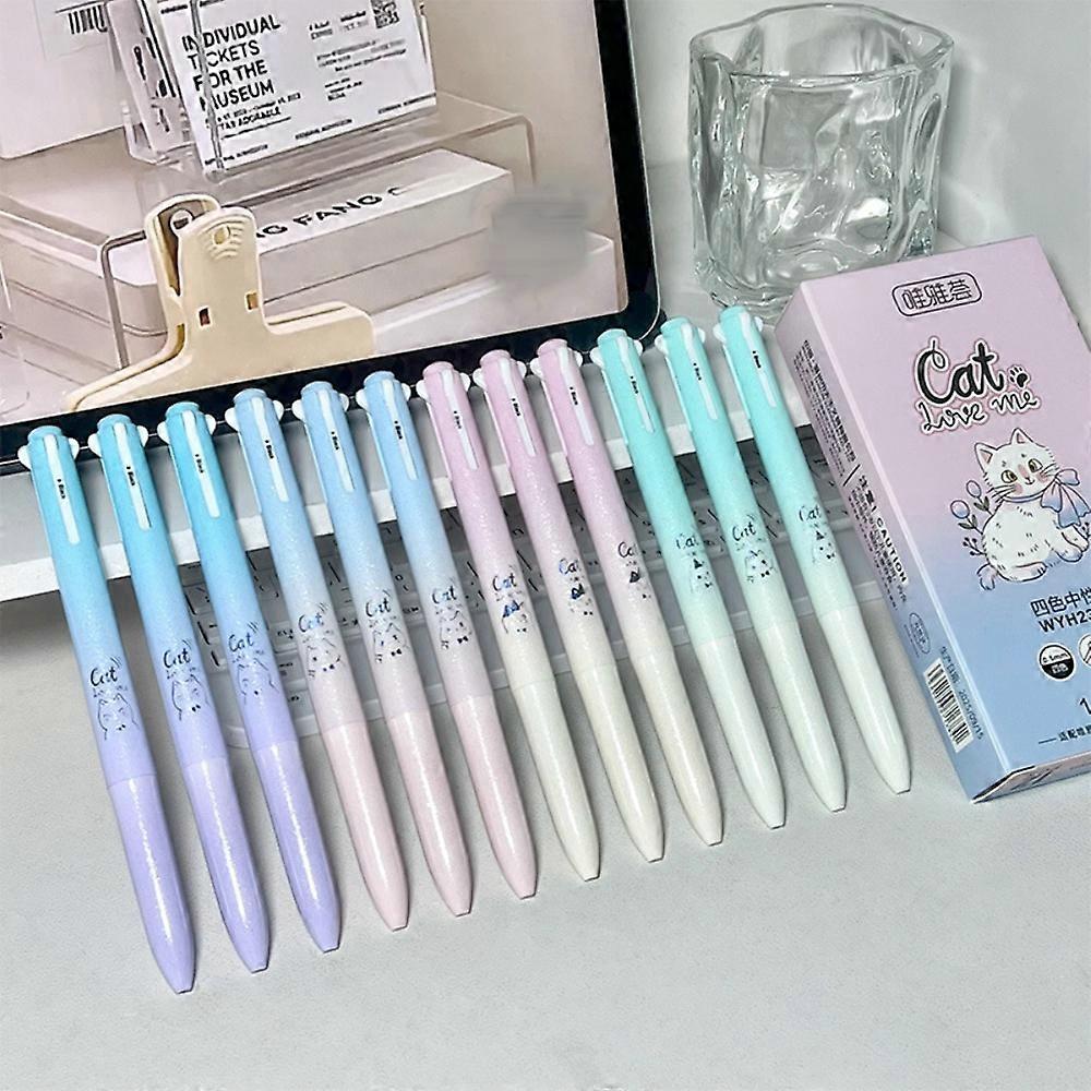 12pcs Smooth Writing 4-in-1 Gel Pen Red/Black/Blue/Green Ink 0.5mm ST Tip Ballpoint Pen Quick Drying Neutral Pen Gift