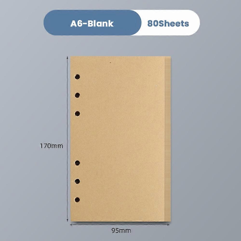 80Sheets Kraft Paper Loose Leaf Paper A5/A6/A7 Horizontal Line/Blank 6-hole Binder Inner Page Notepad Inside Paper Students