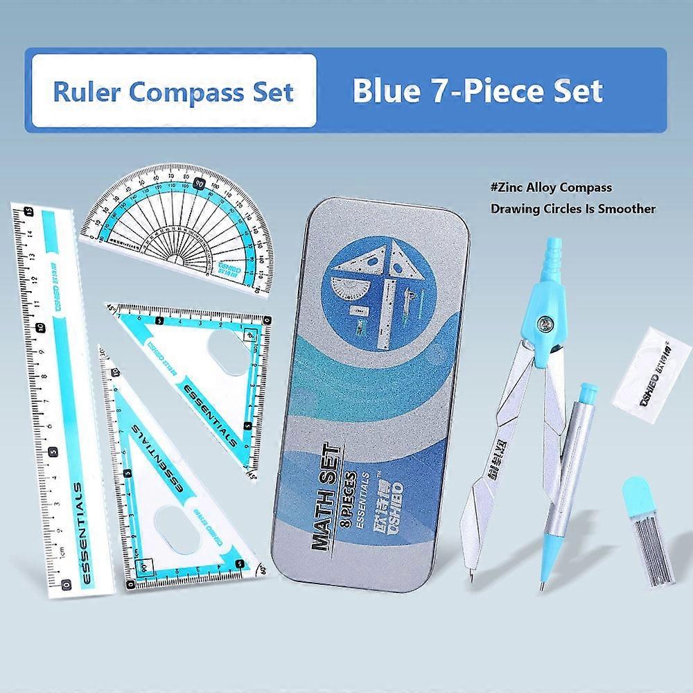 7/8pcs Multifunctional Plastic Compass Ruler Set Transparent Eraser Included Geometry Drawing Tool Measuring Ruler School Office
