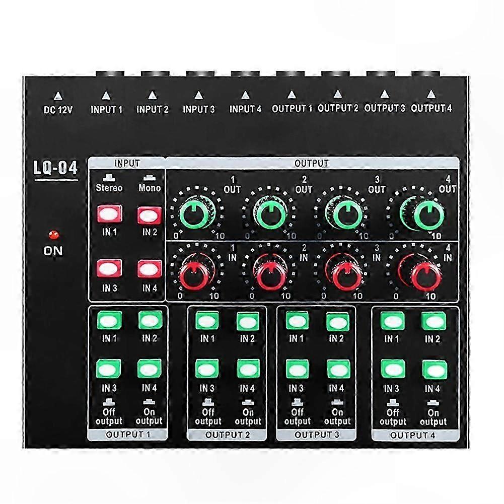Model: LQ04 Type: Mixer Interface Type: USB Channels: 4 Applications: Live broadcasting, recording, guitar, voiceover Supported Connections: USB, XLR Power Consumption: 5W Output Voltage: DC 12V Usage: Mobile recording/mixing, home studio Input Voltage: AC 220V Plug Type: EU Plug (compatible with Indonesia, Germany, France, Spain, Italy, etc.) Color: Black Material: ABS Package Contents: 1 x 4-channel mixer Note: Due to lighting conditions and screen settings, the actual product color may vary slightly from the image shown. Measurement tolerance is ±1–3 cm.