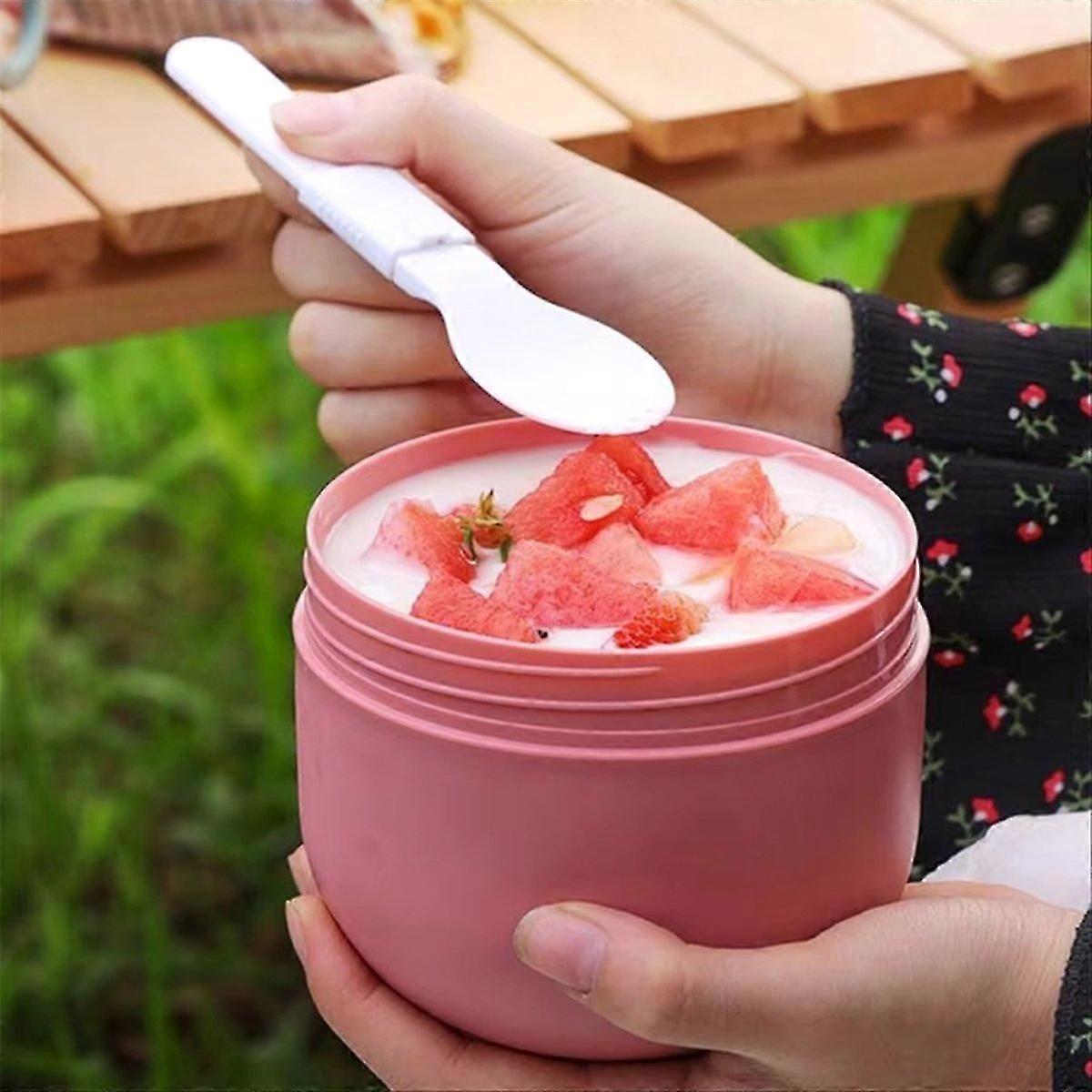 Vacuum Insulated Soup Container - Portable Microwave Safe Lunch Kit with Spoon, Stylish Pink Design