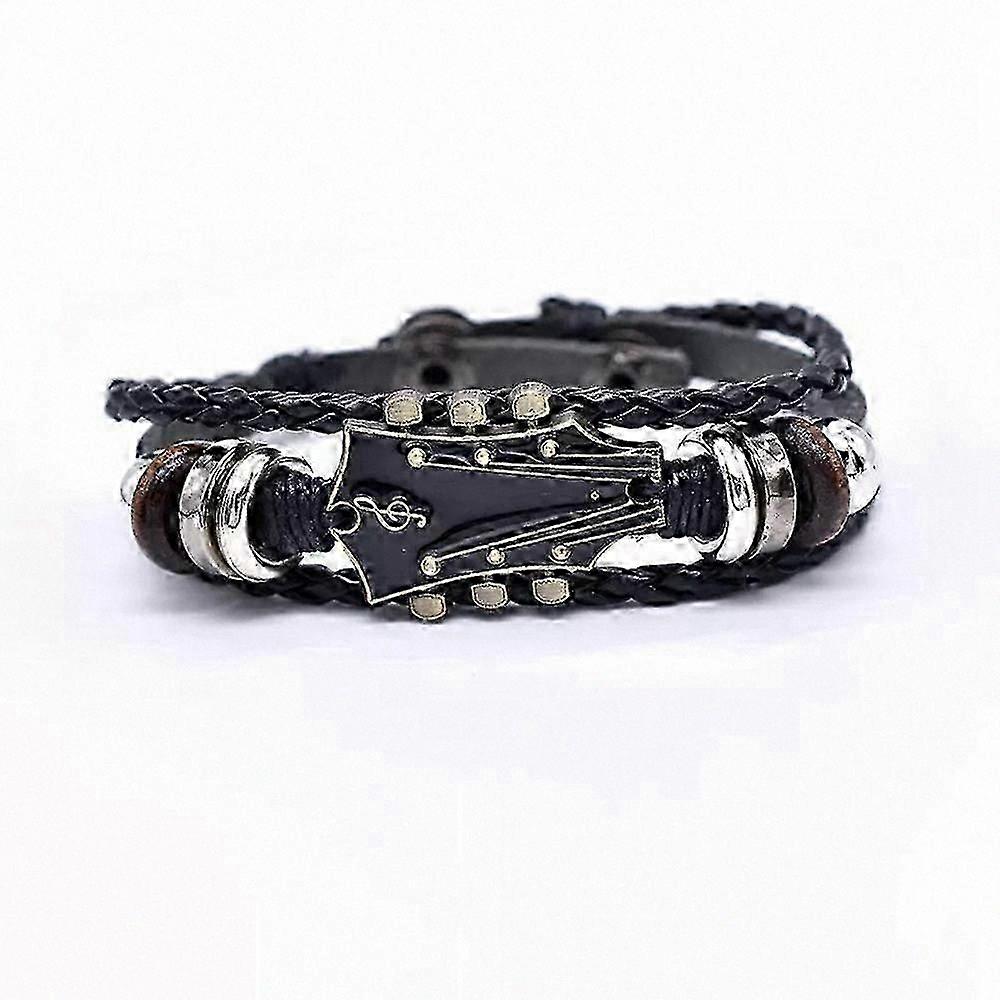 Vintage Guitar Bracelet, Rock Music Leather Cuff, Zinc Alloy Jewelry