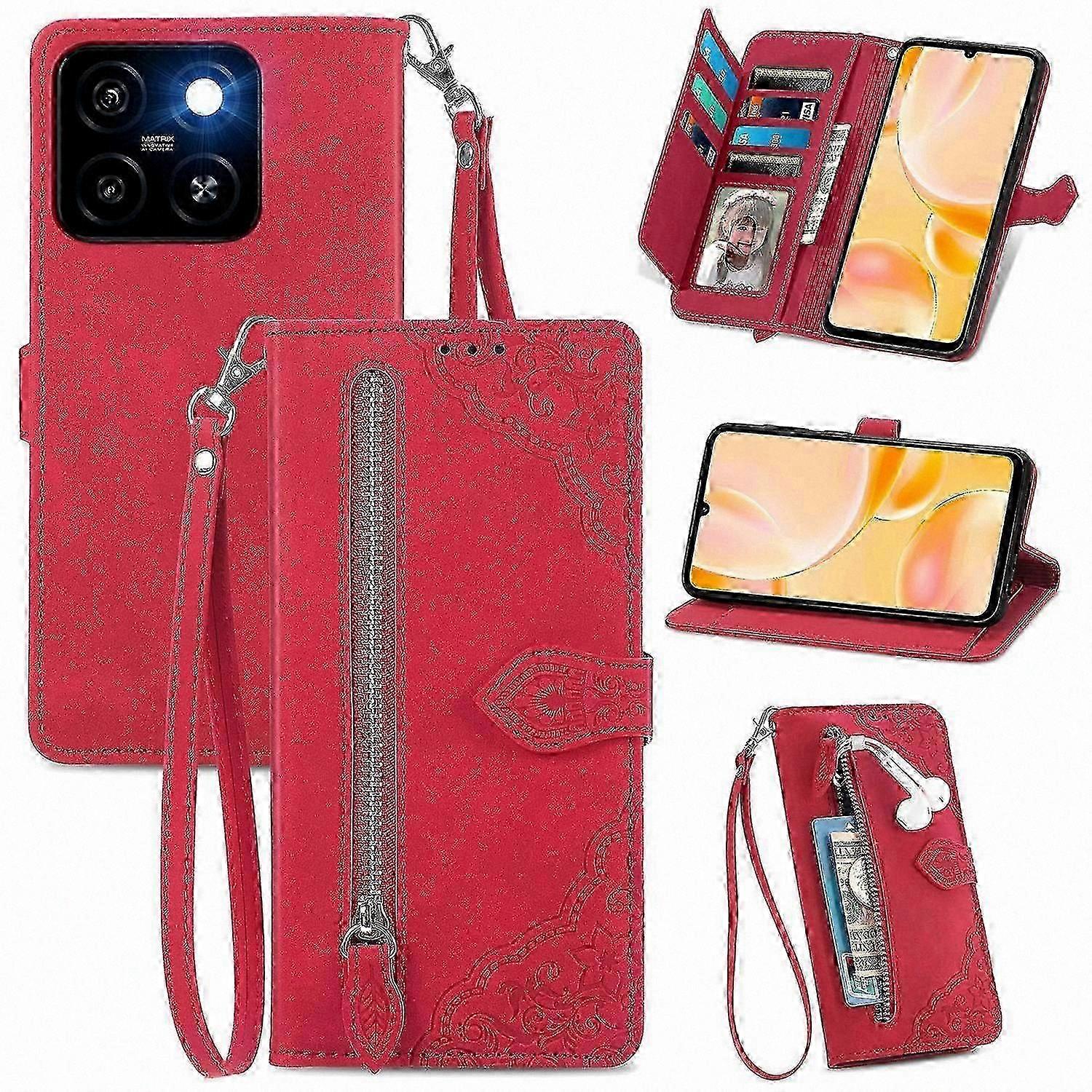 For ZTE Blade A55 Case – PU Leather Wallet with Zipper Pocket, Card Slots, and Stand – Red • Elegant Design: Made from premium PU leather and flexible TPU with a subtle floral pattern • Functional Storage: Features multiple card slots and space for cash • Outer Zipper Pocket: Provides secure, easy-access storage for cash and coins • Magnetic Closure: Secure dual-sided magnetic clasp keeps contents safely in place • Built-in Stand: Allows hands-free viewing for videos and browsing • Full Protection: Offers comprehensive coverage against scratches and everyday drops • Wrist Strap Included: Convenient lanyard strap for easy carrying and added security • Comfortable Grip: Textured surface ensures a secure and comfortable hold Package Includes: • 1 x PU Leather Wallet Case • 1 x Wrist Strap