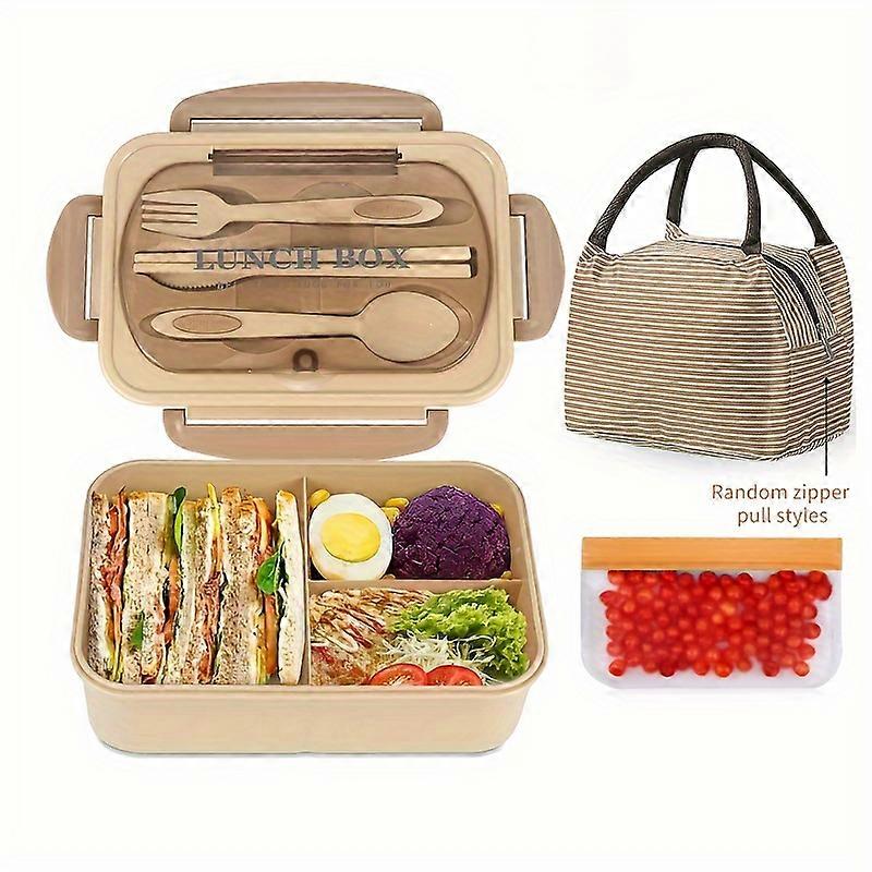 Bento Lunch Box Set with Carry Bag: Microwave-Safe Compartments, Rectangular Design for Adults, School & Office Essentials.
