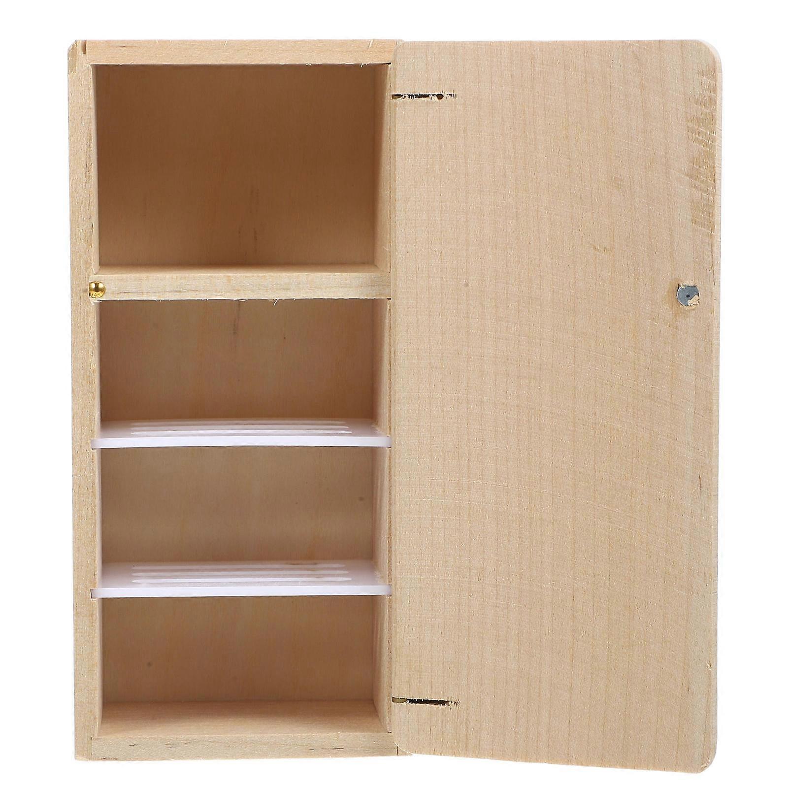 Beige Mini Wooden Refrigerator for Doll House Miniature Furniture Lightweight Design and Realistic Appearance