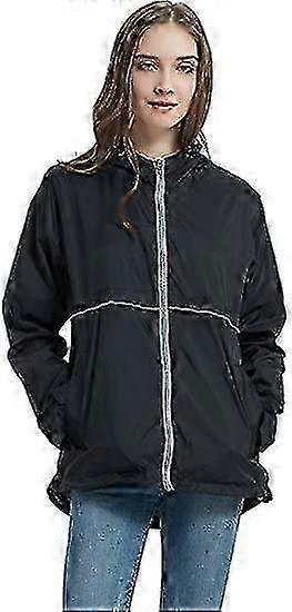 Women's Lightweight Waterproof Hooded Raincoat, Black, XL