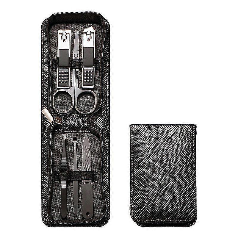 Nail Clippers Set, 6 Pcs Black Advanced Fingernail Maintenance Kit Portable Home Gift