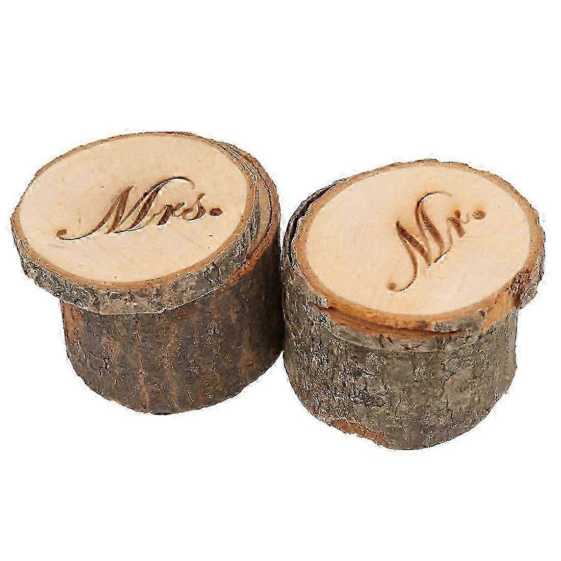 Material: Wood Diameter: 5.5cm / 2.17 inches Height: 5cm / 1.97 inches Internal height: 2cm / 0.79 inch Color: As the picture Vintage Shabby Chic Design with Mr and Mrs. Package Content: 2 x Ring Box Note: Light reflection and different displays may cause the color of the item in the picture a little different from the real thing. The measurement allowed error is +/- 1-3cm.