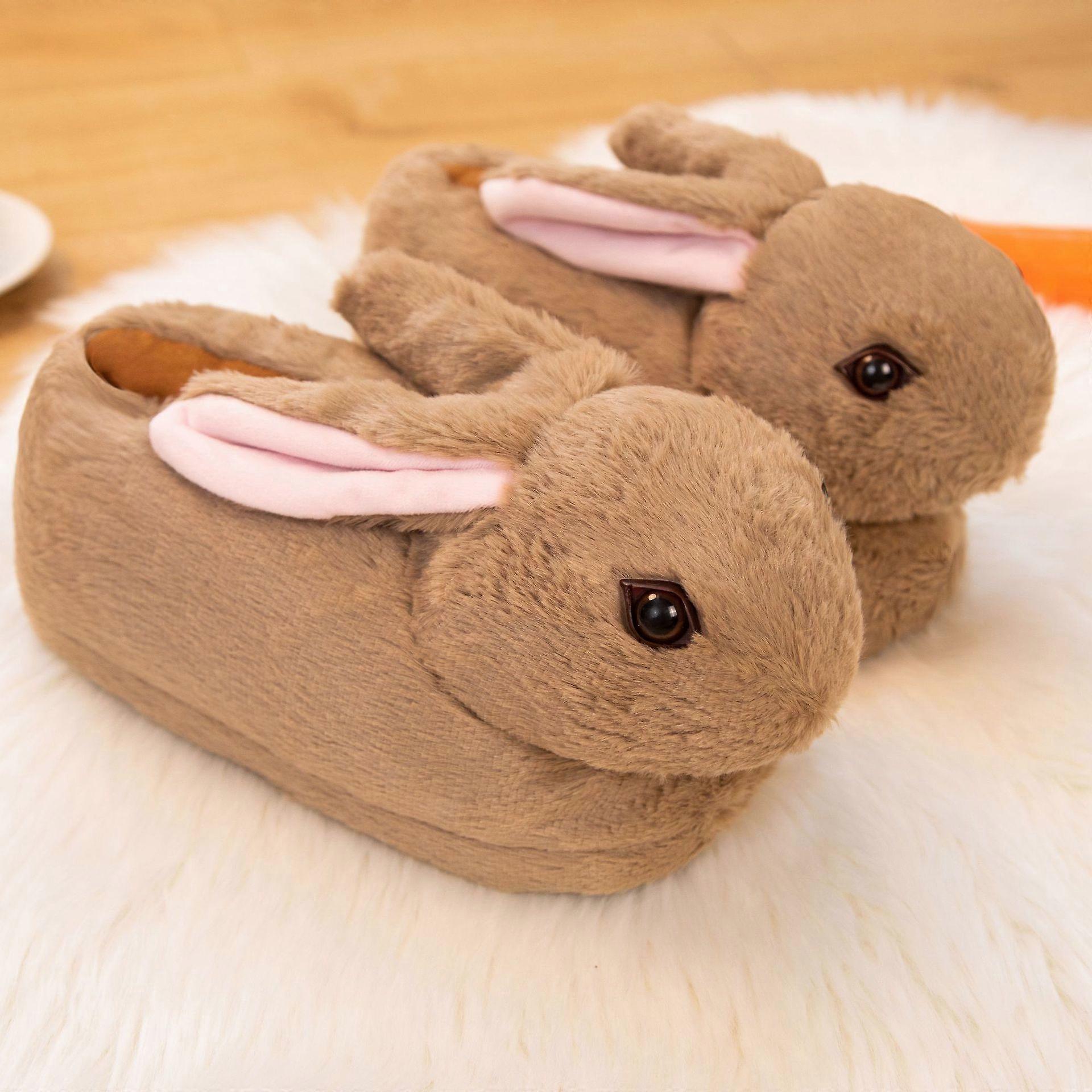 Rabbit Cotton Shoes Ankle Wrap Cotton Slippers Indoor Furniture Cotton Slippers Non-Slip Soft Insulated Cotton-Padded Shoes Mute