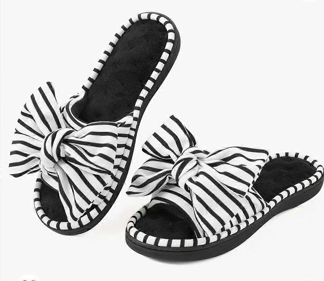 Versatile Striped Bow Home Slippers Indoor Soft Sole Silent Non-Slip Slippers
