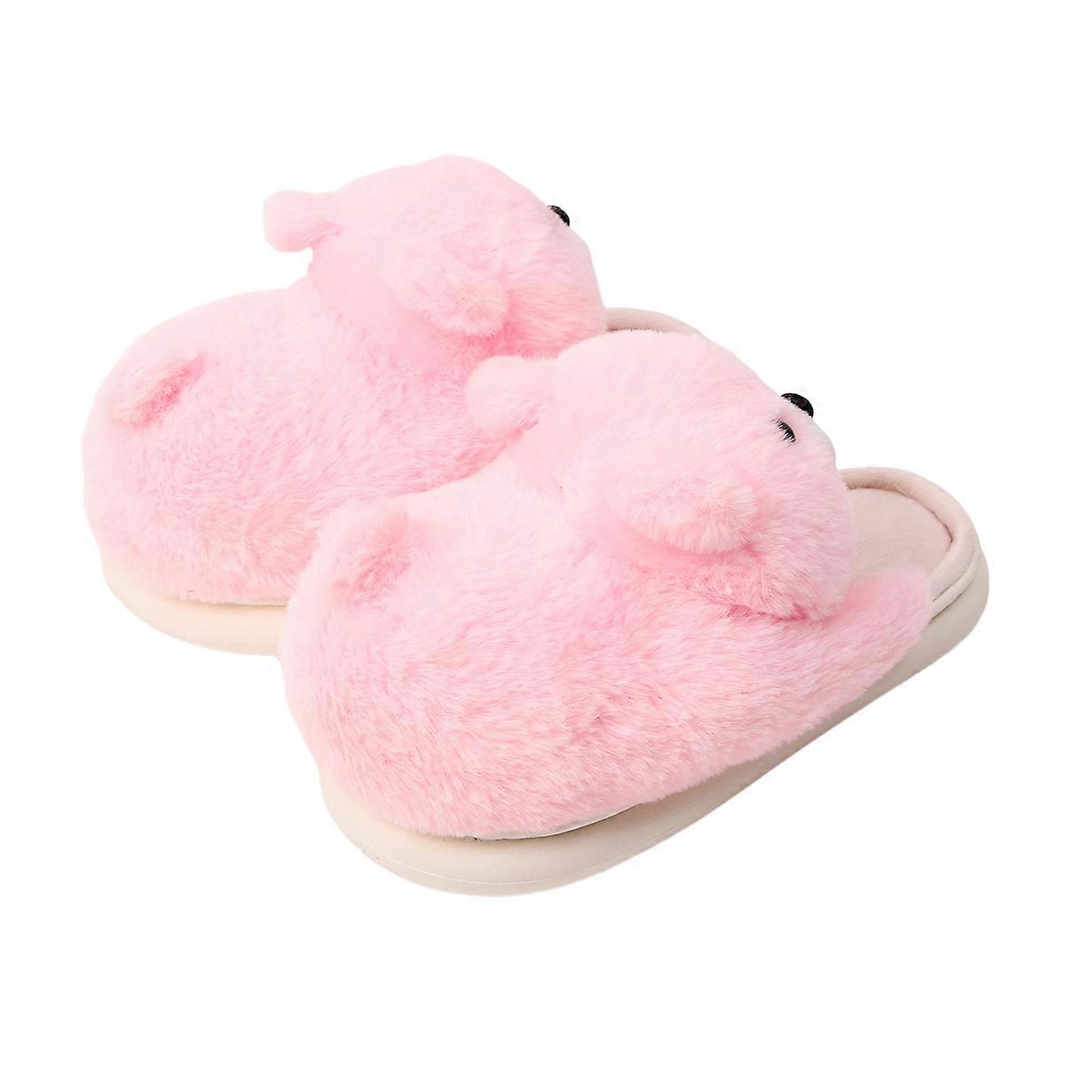 Three-Dimensional Pink Bear Toy Slippers, Couple Cotton Slippers, Men's And Women's Winter Indoor Anti-Slip And Warm Plush Postpartum Shoes