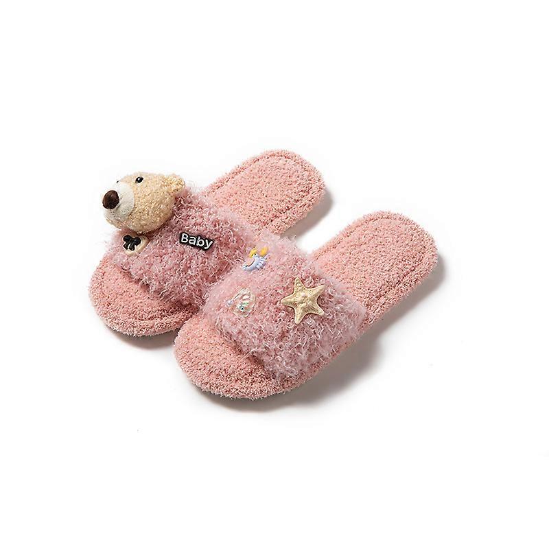 Ins Bear Cotton Slippers, Color-Blocking Open Cotton Slippers, Plush Slippers, Indoor Cartoon Plush Slippers