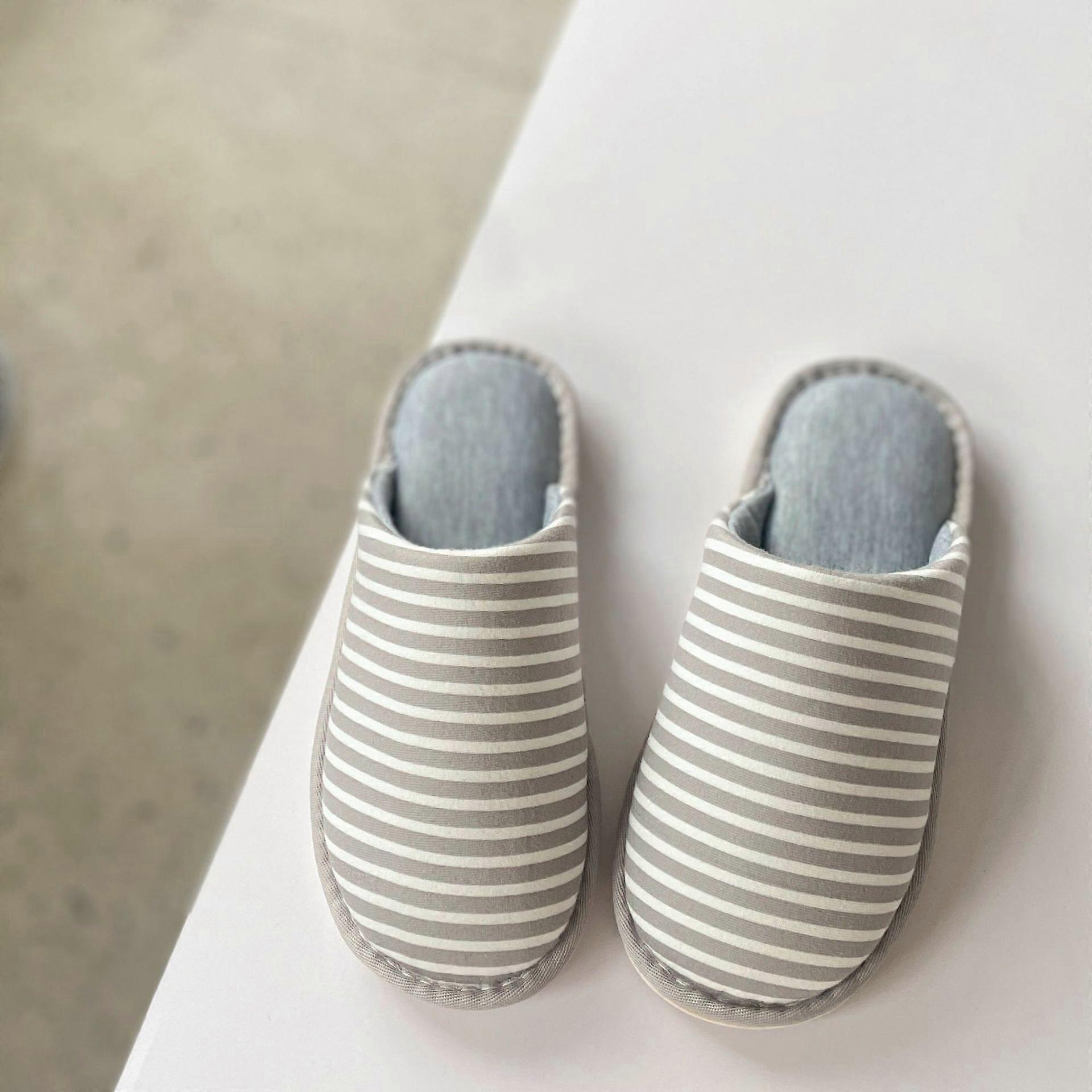 Spring, Autumn And Winter Home Indoor Anti-Slip Floor Couple Striped Cotton Slippers For Men And Women