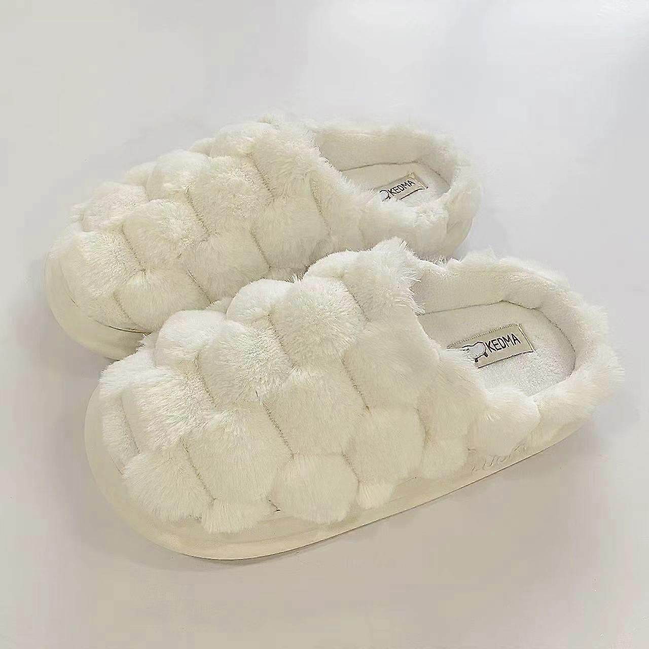 Source Category: Spot Goods<br>Item No. :2412<br>Sole Material: Rubber<br>Inventory Type: Full Order<br>Upper Material: Plush<br>Applicable Gender: Neutral/Both Male And Female<br>Thickness: Increased<br>Pattern: Checkered<br>Is It ? No<br>The Fastest Delivery Time :3<br>Function: Keep Warm<br>Popular Element: Hollowing Out<br>Toe Shape: Round Toe<br>Style: Headpiece<br>Sole Craftsmanship: Sewing Shoes<br>Color: Ivory White<br>Year And Season Of Listing (Listing Time) : Autumn 2023<br>Size :3637<br>Size :3839<br>Size :4041<br>Size :4243<br>Size :4445<br>Applicable Population Type: Couples<br>Origin: Chuzhou, Anhui Province<br>Applicable Age Group: Adults<br>Product Category: Slippers/Home Shoes